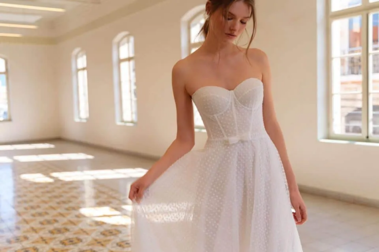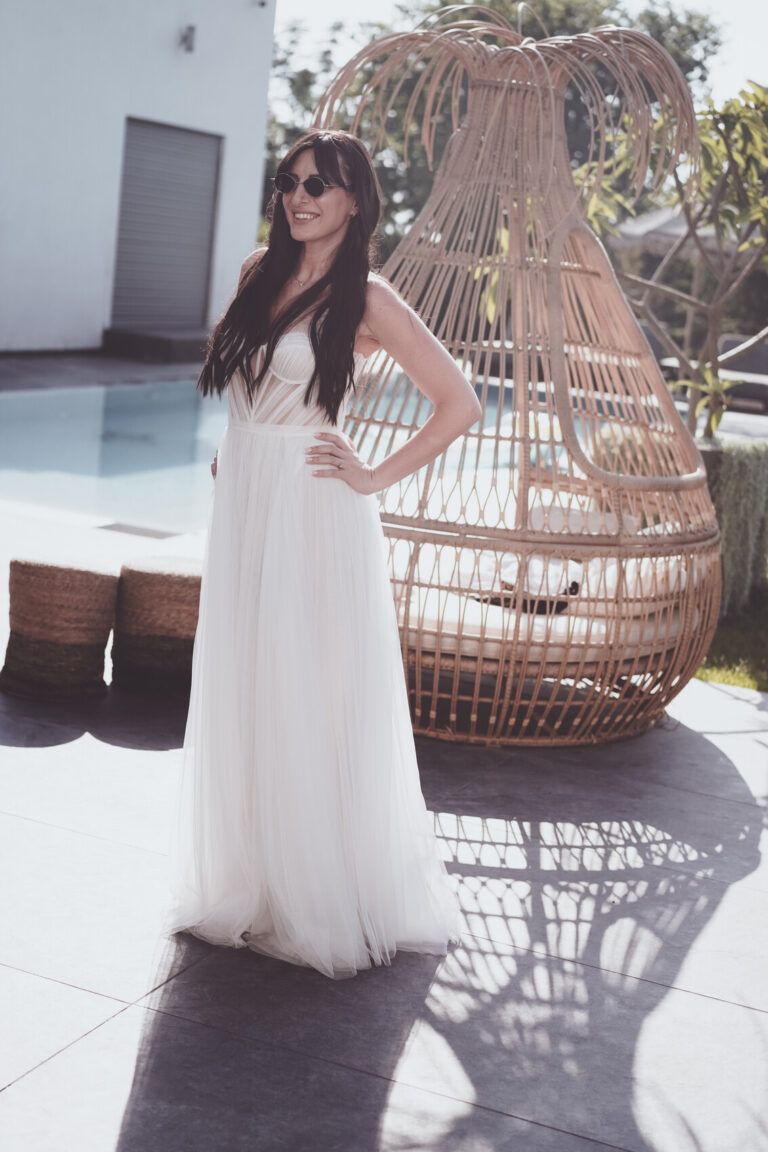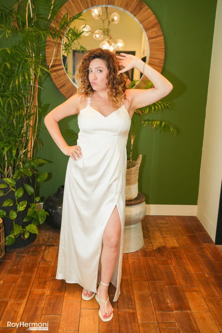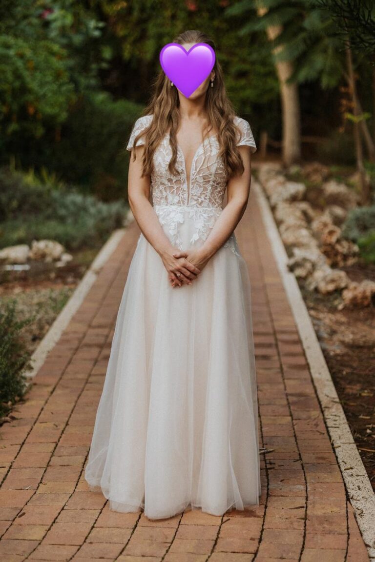 שמלת כלה מלאה בנצנצים מתאימה למידה S-M נמכרת ב4,800 במקום ב8,400 והכלה הזוכה מקבלת חצאית נפח במתנה.