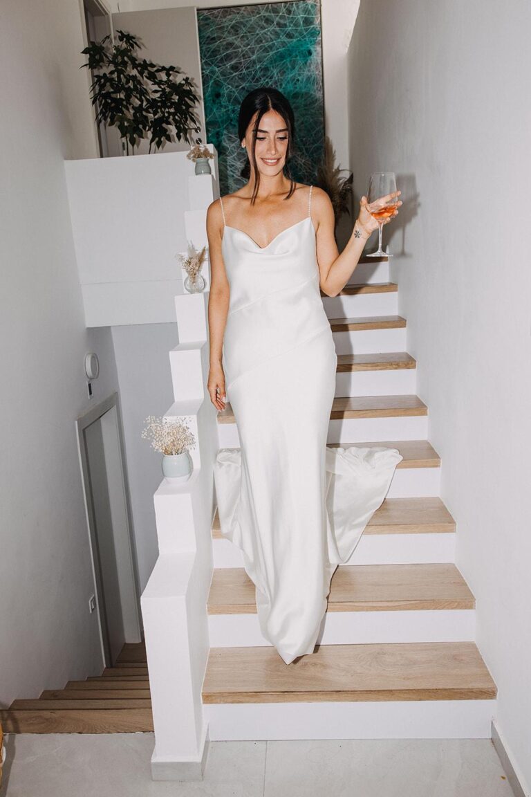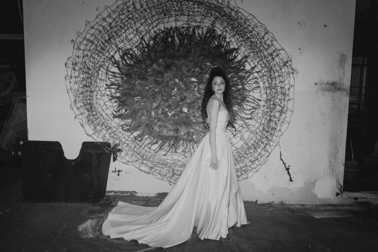 שמלה עם שובל תחרה ארוך ומרשים במיוחד, סקסית, עדינה וקלאסית.