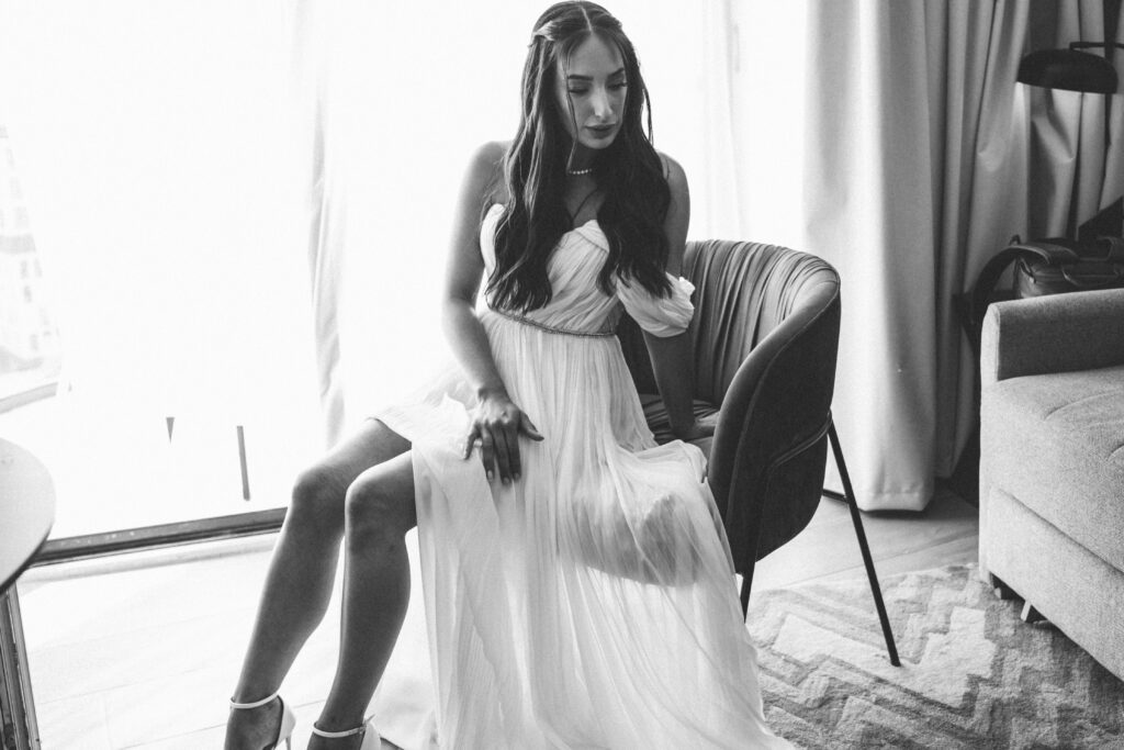 שמלת כלה של המעצב אליהב ששון מבד משי נשפך עם שסע מתאימה למידה 36-38 קאפים בחזה סביב c.